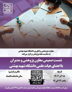 این نشست به‌مناسبت هفته پژوهش از سوی معاونت پژوهشی و فناوری دانشگاه شهید بهشتی برگزار می‌شود.