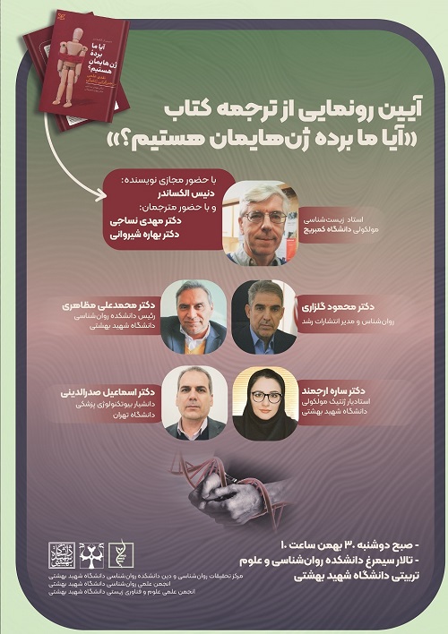 آیین رونمایی از ترجمه کتاب «آیا ما برده ژن هایمان هستیم؟» دوشنبه 30 بهمن 1402برگزار می‌شود.